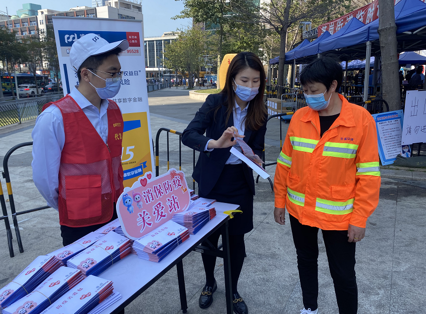 本次“消保防疫關(guān)愛站”系列活動(dòng)主要分布在羅湖區(qū)、福田區(qū)、南山區(qū)、龍崗區(qū)、龍華區(qū)、寶安區(qū)?;顒?dòng)當(dāng)天,在嚴(yán)格做好防疫措施的情況下,浦發(fā)銀行志愿者們身著“消費(fèi)者權(quán)益保護(hù)代言人”的紅馬甲,分別在多個(gè)核酸檢測點(diǎn)建起“消保防疫關(guān)愛站”,現(xiàn)場給醫(yī)護(hù)人員和等候檢測的市民送上“防疫關(guān)愛包”——包括“防疫、消保”愛心提示、防疫口罩、75%酒精消毒巾。考慮到醫(yī)務(wù)人員在高溫天氣長時(shí)間身著防護(hù)服,志愿者們還定制了“最美抗疫先鋒”飲品以及其他物資,獻(xiàn)給這些不辭辛苦的一線工作人員。志愿者們表示,該活動(dòng)一是為了給排隊(duì)等候較久的市民送上防疫愛心關(guān)懷,給長期堅(jiān)守在抗疫一線的醫(yī)務(wù)人員送去衷心的慰問。二者也借3.15消費(fèi)者權(quán)益保護(hù)日之機(jī),給市民和醫(yī)護(hù)人員開設(shè)一堂金融知識(shí)小課堂。