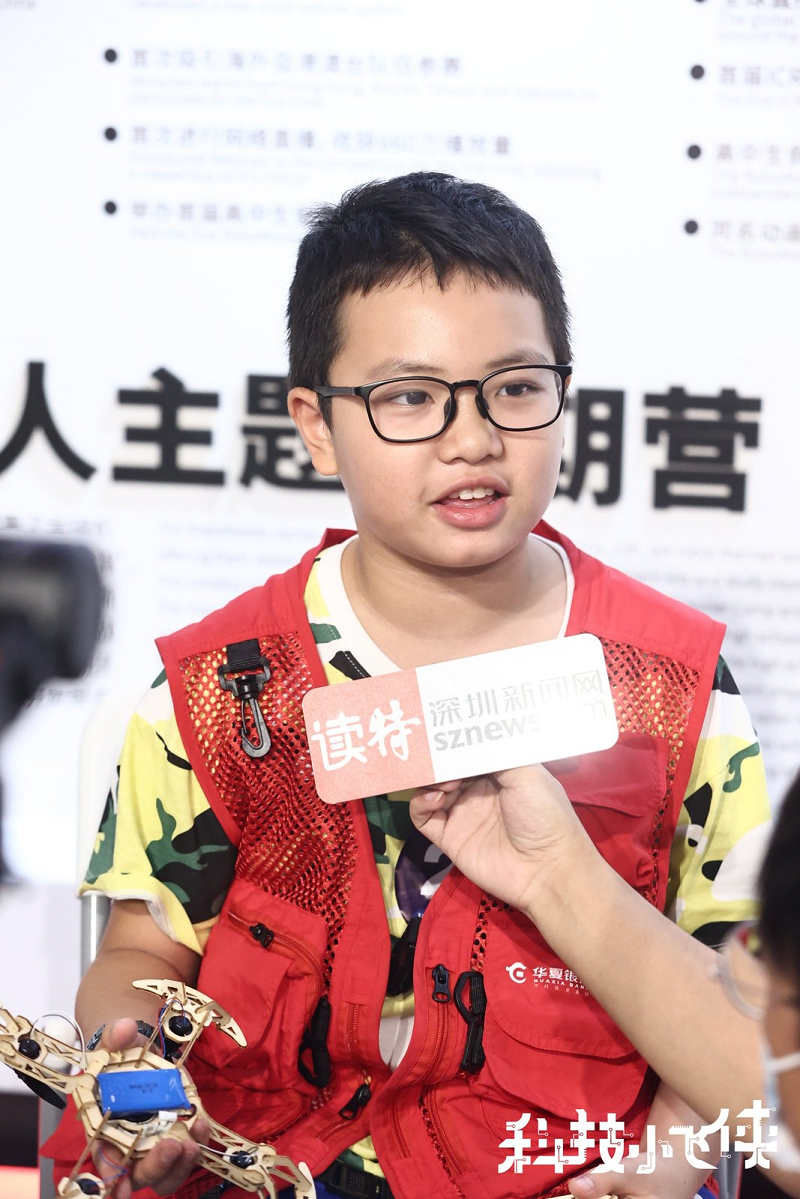 第一個(gè)完成木制無人機(jī)的小飛俠接受記者采訪。(圖源:深圳新聞網(wǎng))