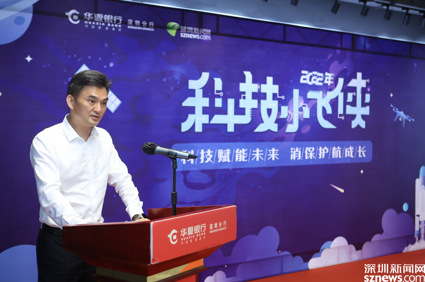華夏銀行深圳分行黨委委員、副行長彭金運在“科技小飛俠”成長營開營儀式中致辭,表示華夏銀行深圳分行一直以來以高度的社會責任感,扎實做好消費者權益保護,以更加創(chuàng)新的舉措深化金融知識普及,以飽含深情的努力守護客戶的錢袋子、守住消費者的信任和托付。
