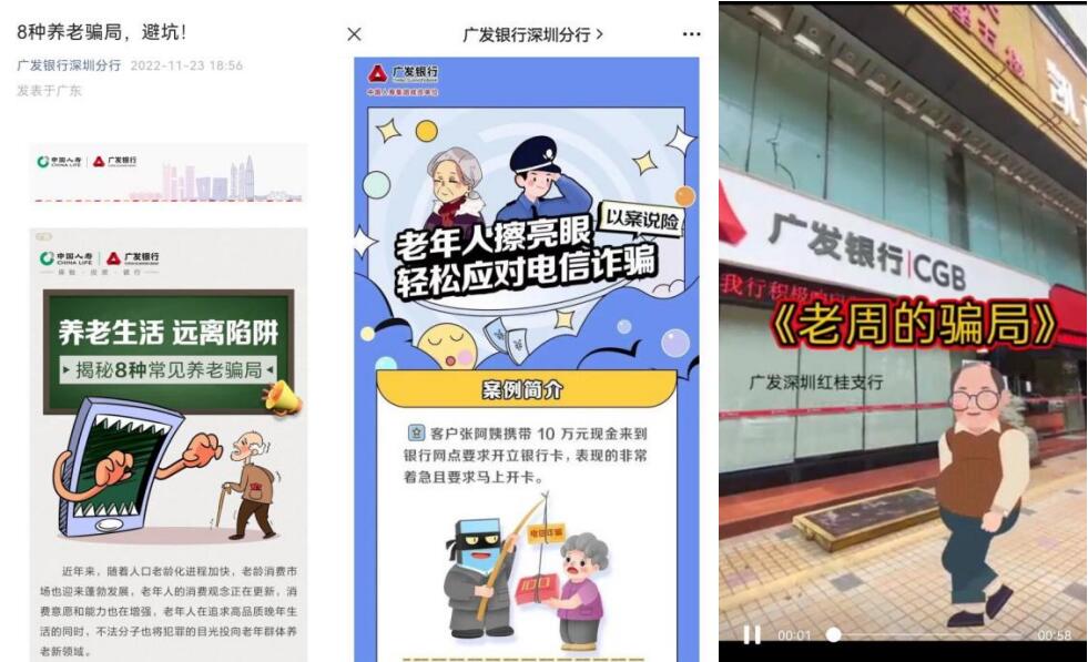廣發(fā)銀行深圳分行積極運(yùn)用數(shù)字科技與新媒體宣傳相結(jié)合,通過(guò)發(fā)動(dòng)全行開展寓教于樂(lè)的短視頻大賽方式來(lái)宣傳金融知識(shí),提高老年人防范養(yǎng)老詐騙意識(shí);通過(guò)分行微信公眾號(hào)發(fā)送防范非法集資、防范養(yǎng)老詐騙等宣傳軟文;加強(qiáng)對(duì)打著科技創(chuàng)新、綠色轉(zhuǎn)型等政策旗號(hào),利用元宇宙、NFT等新概念的新業(yè)態(tài)新形態(tài)等非法集資活動(dòng)進(jìn)行風(fēng)險(xiǎn)提示。