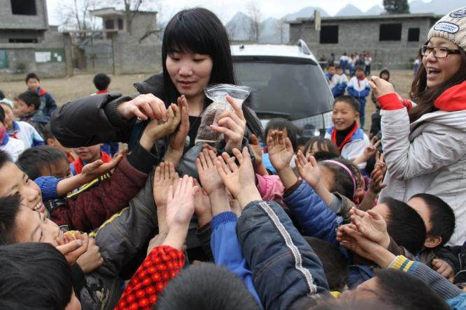 “我始終記得第一次去織金的情景。當(dāng)時(shí),我們從貴陽(yáng)出發(fā),走了5個(gè)小時(shí)的盤(pán)山公路,2個(gè)小時(shí)坑坑洼洼的盤(pán)山小路才到。難以忘記的是破敗的教室里孩子們黝黑冰冷的小手,鼻子上掛著的兩條‘小蟲(chóng)’,透著冬日寒風(fēng)的衣服上的破洞。他們半倚在簡(jiǎn)陋的桌椅邊直打哆嗦,卻依然因?yàn)槲覀兊牡絹?lái)綻放著暖陽(yáng)般的笑臉?!痹瓘V發(fā)銀行深圳分行副行長(zhǎng)駱向東回憶起考察邊遠(yuǎn)村小時(shí)的情景,至今仍心疼不已。