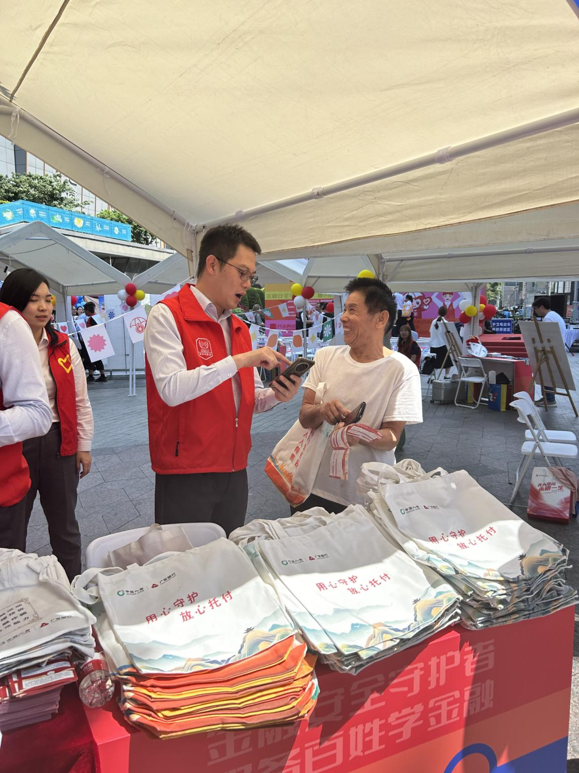活動現(xiàn)場,廣發(fā)銀行工作人員布置的特色展位熱鬧非凡,精心設計的趣味互動問答吸引了眾多市民前來打卡。市民朋友們在學習金融消保知識的同時,還可以獲贈消保文化帆布袋和抽紙等禮品。“廣發(fā)展位的問答活動很有趣,既可以增長消保知識,還可以獲得獎品!”一位前來參加活動的阿姨興奮地說道。