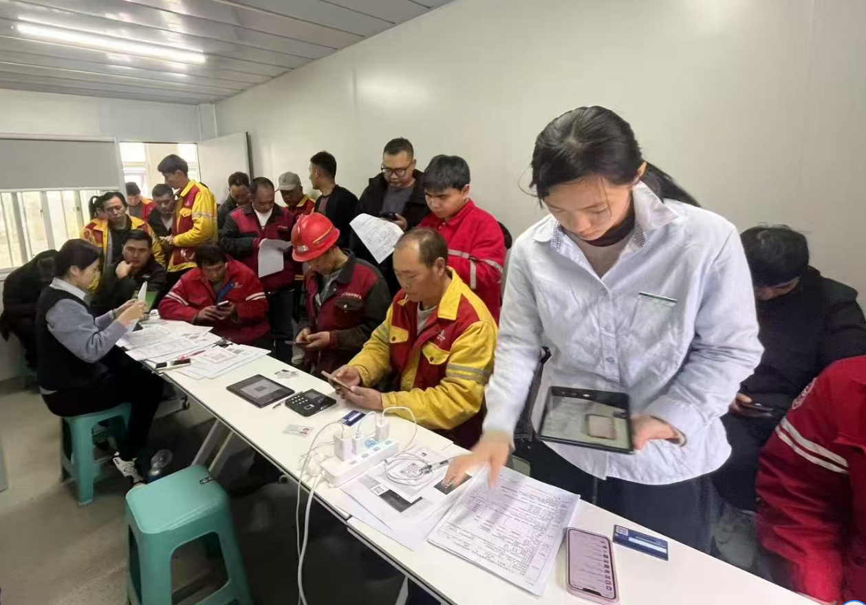 面對困難,陳嘉濤深知客戶需求無小事。他果斷決定帶隊前往現(xiàn)場,為當(dāng)?shù)貑T工集中辦理銀行卡開卡及工資代發(fā)相關(guān)手續(xù)。從繁華的深圳到偏遠(yuǎn)的高原,路途遙遠(yuǎn)、舟車勞頓,加上高原反應(yīng)帶來的身體不適,讓整個團(tuán)隊面臨嚴(yán)峻考驗。但他們沒有絲毫退縮,抵達(dá)后便迅速搭建臨時服務(wù)點,投入到緊張的工作中。