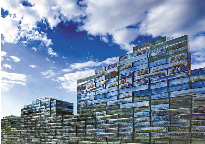 最具代表性的是盛姍姍受邀參加2009年第53屆威尼斯雙年展的作品《開(kāi)放的長(zhǎng)城》,它長(zhǎng)約22米,由2200多塊玻璃磚組成,對(duì)應(yīng)中國(guó)長(zhǎng)城存世的2200多年歷史,通身透出七彩光芒;《文字演變》描述了象形文字從原始的狀態(tài)到當(dāng)代文字的演變;《舞動(dòng)的絲帶》則以中國(guó)當(dāng)代的絲帶舞為基礎(chǔ),形成色彩與絲帶交織的造型,而這種造型代表了泛文化在公共建筑內(nèi)的交融。此外,《生生不息的竹子》《華夏青銅時(shí)代系列》《算盤》等作品,都可以找到鮮明的中國(guó)傳統(tǒng)文化元素。