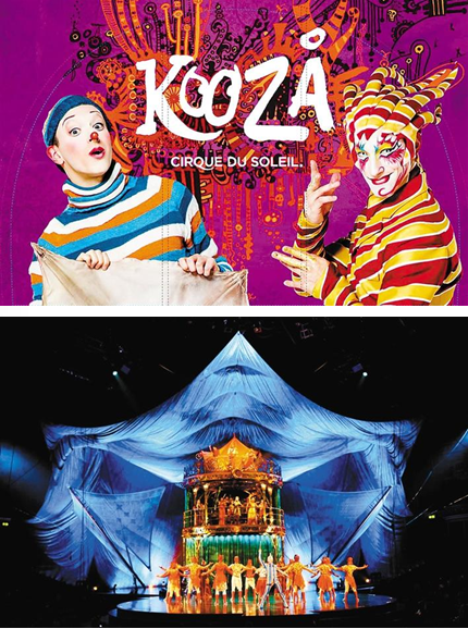 《KOOZA》是一趟尋找自我的奇幻之旅,它包藏在絢爛的表演和詼諧的幽默之中。主角“小天真”天真爛漫卻憂郁,他渴望找到屬于自己的角落。某天,他收到了一個(gè)神秘的箱子,里面跳出的造夢師帶領(lǐng)他進(jìn)入奇幻世界,國王、小丑、流浪者和惡狗陸續(xù)登場,小天真經(jīng)歷了人生的酸甜苦辣、生離死別,最終尋找到了自我。秀中呈現(xiàn)的驚險(xiǎn)雜技表演與充滿想象力的故事腳本,加上色彩斑斕的舞美,極具感染力的現(xiàn)場音樂,令其成為有口皆碑的現(xiàn)場娛樂經(jīng)典。