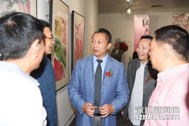圖為香港中聯(lián)辦宣傳文體部副部長朱挺(右三)出席紀(jì)光吉畫展?!?/p>
