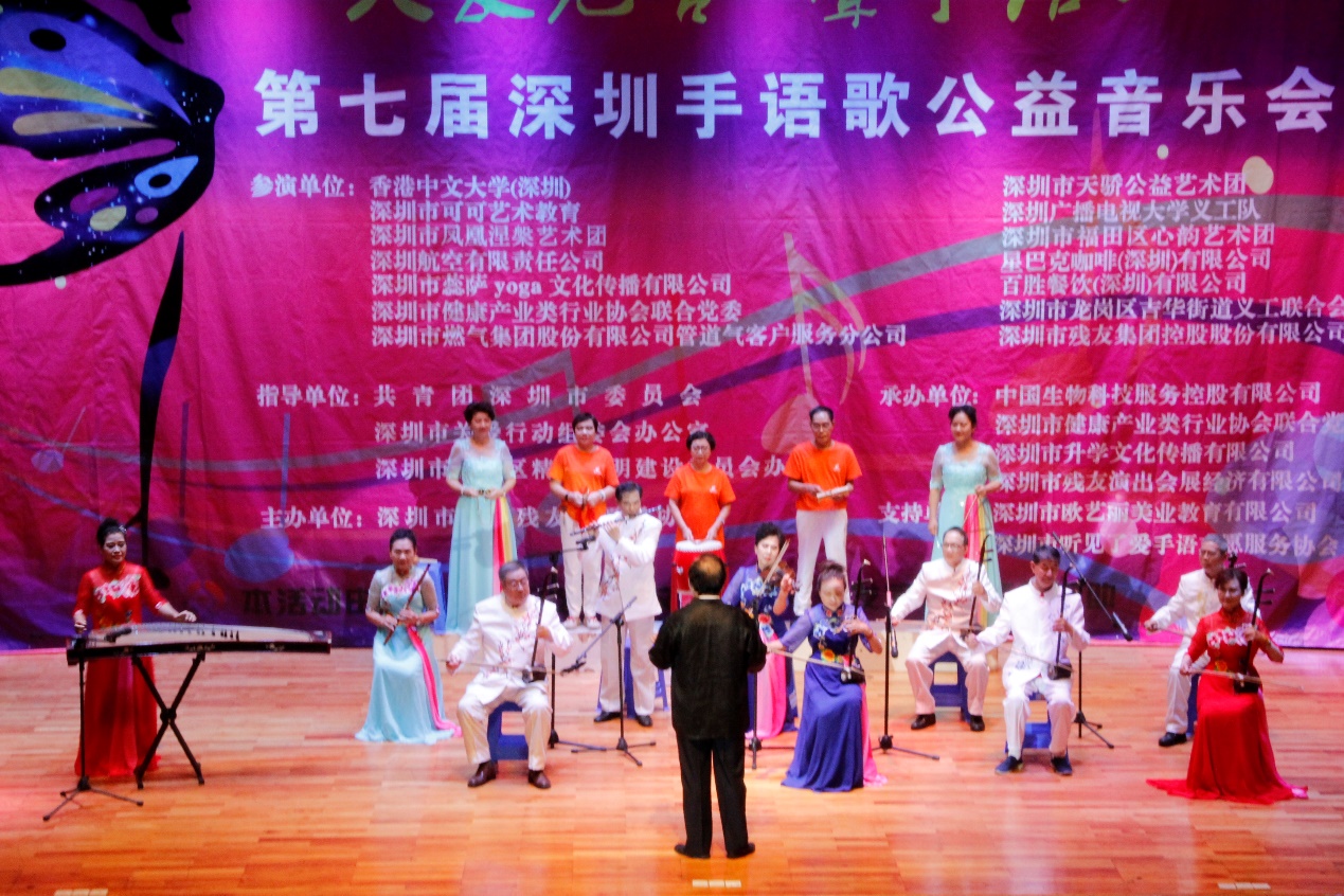 據(jù)悉,本屆手語歌公益音樂會由深圳市福田區(qū)宣傳文化體育事業(yè)發(fā)展專項資金資助,同時獲得市委宣傳部、市共青團、市關愛辦、區(qū)精神文明辦的大力支持,由深圳市關愛殘友志愿者協(xié)會主辦,中國生物科技服務控股有限公司、深圳市健康產(chǎn)業(yè)類行業(yè)協(xié)會聯(lián)合黨委、深圳市升學文化傳播有限公司和深圳市殘友演出會展經(jīng)濟有限公司等單位聯(lián)合協(xié)辦。自2008年首屆手語歌公益音樂會舉辦以來,歷屆“深圳手語歌公益音樂會”都會邀請政府、企事業(yè)單位、社會團體等學習手語歌舞、舉行大型公益匯演。(張俊達)