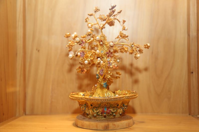 花絲鑲嵌最早可追溯至春秋戰(zhàn)國時的金銀錯,至唐代的金銀平脫,明清時是花絲鑲嵌的發(fā)展的巔峰期,并成為皇家定制的頂級奢侈品,是真正屬于我們中國人的“奢侈工藝”。它的技法精湛,美輪美奐,是雋永流傳的文化瑰寶。