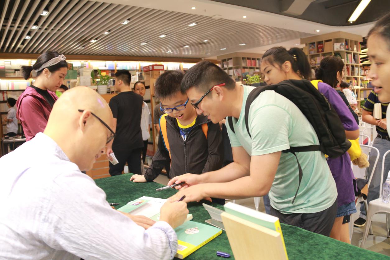 活動(dòng)最后,作者劉建彪先生繼續(xù)與讀者展開(kāi)交流,為購(gòu)書讀者簽名。來(lái)自東莞的江先生坦言,周末帶著小孩無(wú)意進(jìn)入羅湖書城,即被活動(dòng)內(nèi)容吸引,在1個(gè)小時(shí)的活動(dòng)中,感受到了漢字的魅力,感受到了深圳濃郁的文化氛圍。“以后帶孩子多來(lái)深圳書城,看書聽(tīng)講座”,他說(shuō)。