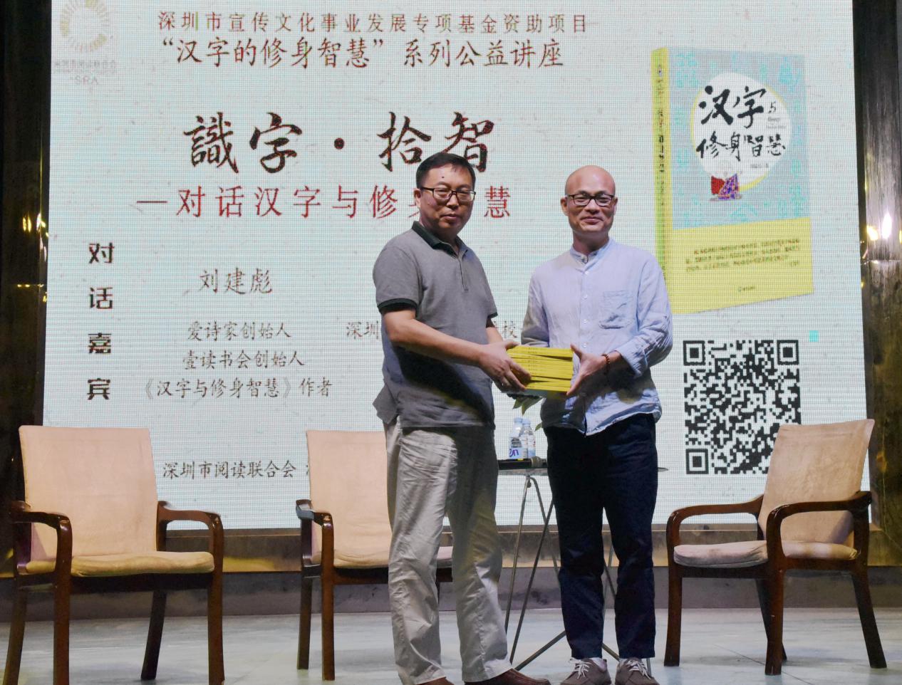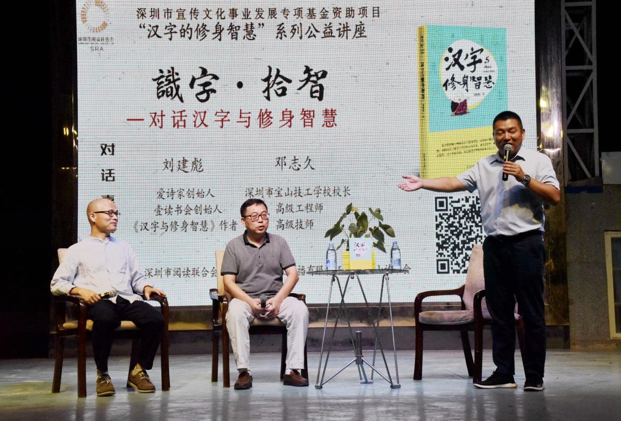 深圳新聞網(wǎng)訊 9月18日晚上7時,由深圳市閱讀聯(lián)合會、深圳市壹書文化傳播有限責(zé)任公司和寶山讀書會共同主辦的“‘識字拾智’——對話漢字與修身智慧”公益文化講座在寶山技工學(xué)校寶山大舞臺拉開了序幕。據(jù)悉,這是由深圳市宣傳文化事業(yè)發(fā)展專項基金資助項目“漢字的修身智慧”的第三場公益文化講座,以劉建彪《漢字與修身智慧》新書分享為契機,傳播漢字正能量,讓更多的青少年識字長智,領(lǐng)略漢字文化之精妙。
