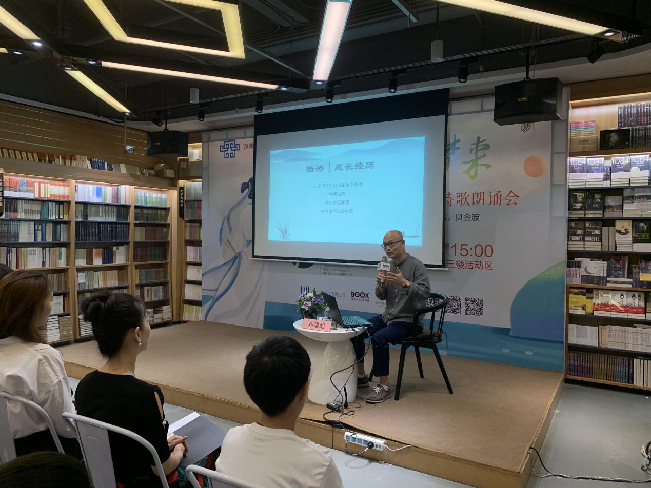 深圳新聞網(wǎng)訊 9月21日下午,由深圳市宣傳文化事業(yè)發(fā)展專項基金資助的“新時代中華優(yōu)秀傳統(tǒng)文化進社區(qū)”項目之“鐵馬冰河入夢來”陸游愛國詩詞公益講座暨陸游愛國詩詞朗誦會在羅湖書城三樓活動區(qū)成功舉辦。本次活動由深圳市壹書文化傳播有限責(zé)任公司、深圳書城羅湖城共同主辦,壹書閱讀推廣人、愛詩家創(chuàng)始人劉建彪先生擔(dān)任主講嘉賓。活動尚未開始,現(xiàn)場已座無虛席,觀眾們對講座充滿了期待,更有小朋友們朗誦起了陸游的名句。