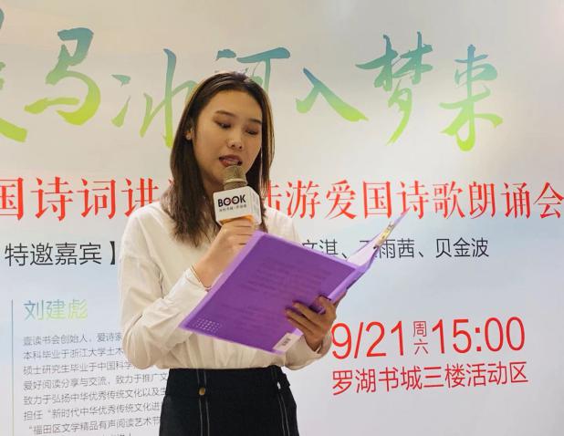 據(jù)悉,為弘揚愛國主義精神,壹書公司9月份安排了陸游、辛棄疾兩位著名愛國詩人的詩詞講讀和愛國詩詞朗誦,“詩詞,是詩人從心底里流露出來的生命體驗,在學(xué)習(xí)愛國詩詞、特別是朗誦愛國詩詞的過程中,我們更能深刻感受詩人的愛國情懷,從而引起強烈的共鳴?!眲⒔ū胝f道。 (通訊員:蔡淑琳)