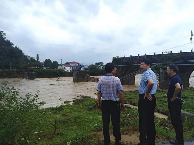 安徽省文物工作人員現(xiàn)場查看黃山鎮(zhèn)海橋受損情況(來源:國家文物局)