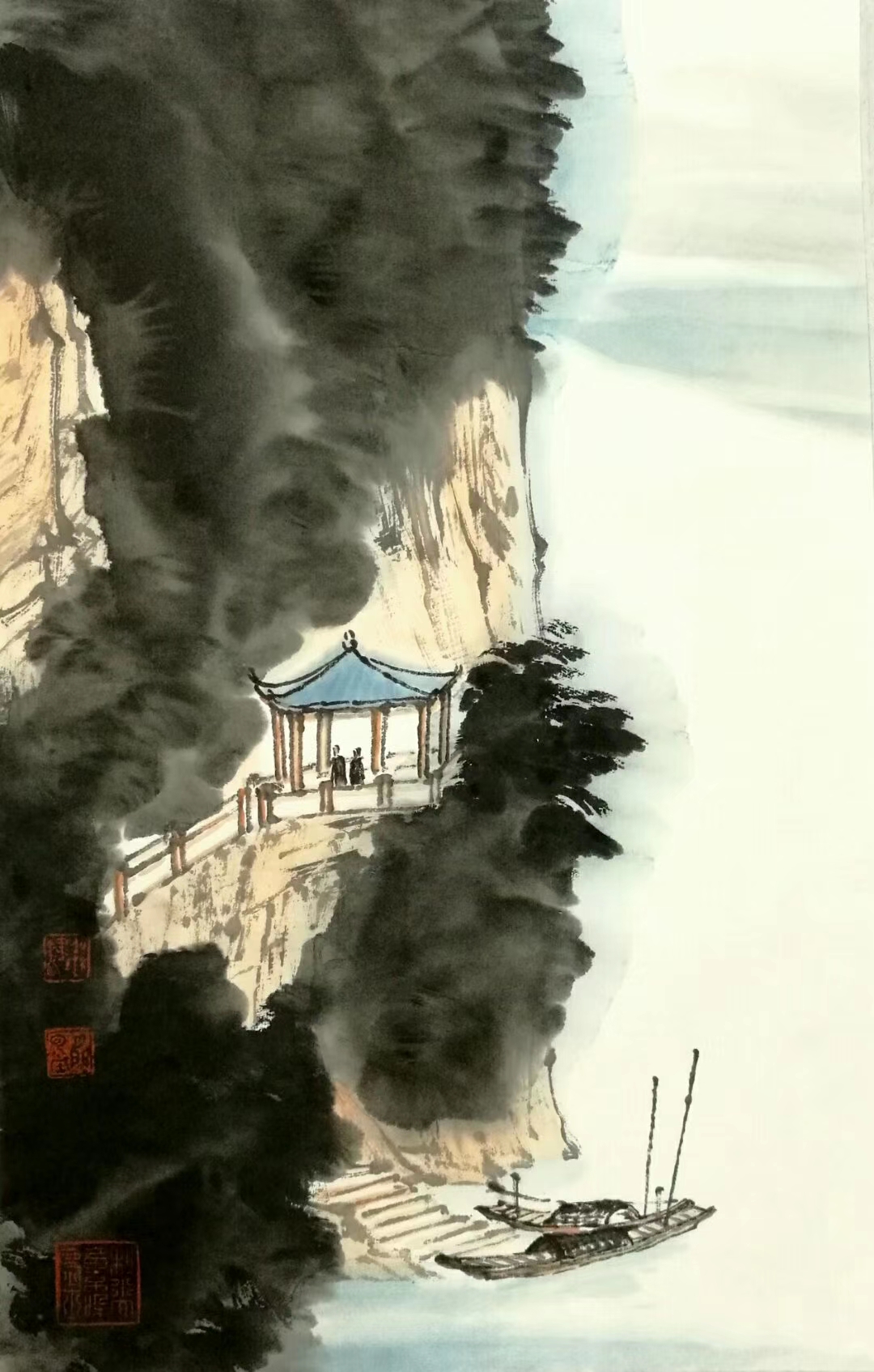 智者說(shuō),人生有三重境界:第一重,看山是山,看水是水;第二重,看山不是山,看水不是水;第三重,看山又是山,看水又是水。吳琳初以寫(xiě)實(shí)為主,時(shí)常云游四方、畫(huà)稿盈笈,得意妙筆不絕如縷;繼而參以己意,畫(huà)風(fēng)微變,花鳥(niǎo)魚(yú)蟲(chóng)在造境中盛開(kāi)、飛翔、游嬉,精品力作吸 人眼眸;今番小山水,神來(lái)之筆頻頻,寫(xiě)實(shí)乎?寫(xiě)意乎?寫(xiě)心也!或許,是吳琳的畫(huà)境暗合了人生三境吧。竊以為,寫(xiě)實(shí)是一眼之境;寫(xiě)意是一時(shí)之念;寫(xiě)心乃一生之魂?;蛟S,已過(guò)天命的吳琳兄,欲拋脫生活之牢籠,直抵生命的本真,心生禪意,境界便升至新的維度。如此,畫(huà)境安在?自然隨心,有心則為之,無(wú)心則諉之。老子言“無(wú)為而無(wú)不為”,蘇軾言“無(wú)意于佳乃佳”,想必隨心之境可助吳琳兄“一臂之力”,畫(huà)境、藝境自可更上層樓。