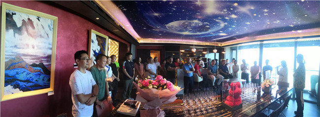 樊鴻賓美術(shù)館座落在珠海市香洲區(qū)內(nèi),旁接情侶路,目眺鳳凰灣,一派浪漫情調(diào),真是一塊滋養(yǎng)藝術(shù)的風(fēng)水寶地。展館所在的天宸大廈十六樓。面朝大海,視野開闊,藍天白云,碧海揚帆,讓人心曠神怡。與此同時,室內(nèi)樂聲輕伴、紅酒飄香,此景、此情映襯之下,緩步巡看展品,或細(xì)細(xì)靜賞佳作,自然而然有一份莫名舒適的藝術(shù)享受。