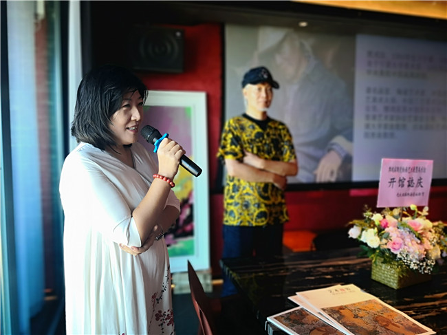 開館儀式上,樊鴻賓老師講話并開香檳慶祝