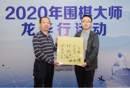 現(xiàn)場安排了圍棋大師們的離校的儀式,贈送圍棋世界冠軍簽名的棋盤留校紀念。