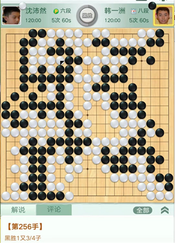 第一臺慢棋,由深圳隊的沈沛然六段執(zhí)白對陣衢州隊的韓一洲八段。開局白優(yōu)勢。中盤出于優(yōu)勢意識,一直沒有在黑棋右邊模樣里面施展手段,被黑圍起大空后局面難以掌握。中央白棋應該對黑棋弱棋發(fā)起總攻,實戰(zhàn)貪吃黑三個殘子,導致局面接近。之后白棋形勢判斷有誤,招法松緩,以微弱差距落敗,沈沛然執(zhí)白1又3/4子負韓一洲。