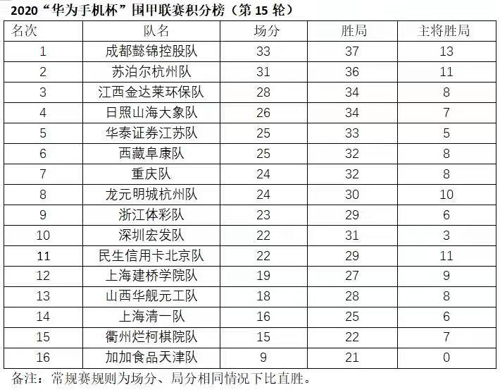 艦元工,加加食品天津 2:2主將負(fù) 衢州爛柯棋院,江西金達(dá)萊環(huán)保 3:1勝 上海清一。