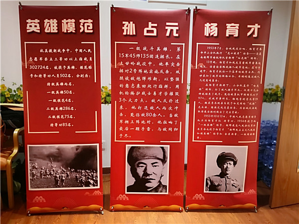 《抗美援朝十大英雄和著名戰(zhàn)役宣傳展》主要以展板形式陳列在活動現(xiàn)場四周,以便于到場的人學(xué)習(xí)參觀。據(jù)悉,在抗美援朝戰(zhàn)爭中,中國人民志愿軍榮立三等功以上指戰(zhàn)員有302724名,被授予英雄、模范稱號和特等功人員502名,其中:特級英雄兩名,一級英雄50名,一級模范4名,二級英雄286名,二級模范75名,特等功85名。本次宣傳展收集了十位最有影響的英雄,他們是:彭德懷、楊根思、黃繼光、解秀梅、孫占元、邱少云、楊育才、張?zhí)曳?、王海、羅盛教。著名戰(zhàn)役有:上甘嶺戰(zhàn)役、馬良山爭奪戰(zhàn)、橫城反擊戰(zhàn)、云山之戰(zhàn)……參觀之后,許多人為英雄人物的言行所感動,表示要傳承發(fā)揚(yáng)抗美援朝不畏強(qiáng)權(quán)的英雄主義和革命精神。