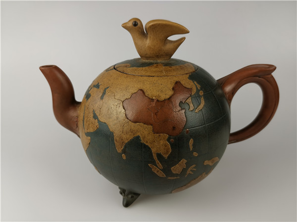 再說第二件,《世界和平壺》的回歸。2020年6月,唐朝霞老師的愛人韋強先生正在深圳商會開會。其間,一次會議結(jié)束后剛回到酒店時手機響起!一位美國的朋友電話給他告訴他一個天大的喜訊:在日本發(fā)現(xiàn)了唐朝霞爺爺唐鳳芝的傳奇作品“世界和平壺”。韋強介紹說,1943年,因為唐鳳芝是民國時的紫砂大師,民國政府委托唐鳳芝先生特制了“世界和平壺”,隨后,由宋美齡女士在赴美國演講時一起帶了過去,象征著世界和平之意!想不到時隔80年,竟然在日本出現(xiàn)了。韋強說,看到實物照片時,真的太激動了!此前,他們在家里只看到過爺爺設(shè)計的圖紙,從沒看到過實物,接到這意外訊息真的是驚喜萬分!真是難以入眠!通過一系列的協(xié)調(diào),日本的藏家愿意轉(zhuǎn)讓,讓激動的心更加興奮了,立即訂了機票,著手辦理“回歸事宜”。當(dāng)他終于在海關(guān)拿到了這件作品,包裝非常完好,便緊緊的抱在胸前:飄泊海外80年的“思念”終于落定了,爺爺唐鳳芝的“世界和平壺”終于回家了。韋強說:當(dāng)時的心情無法用言語形容!只覺得天空格外清新、陽光格外燦爛!