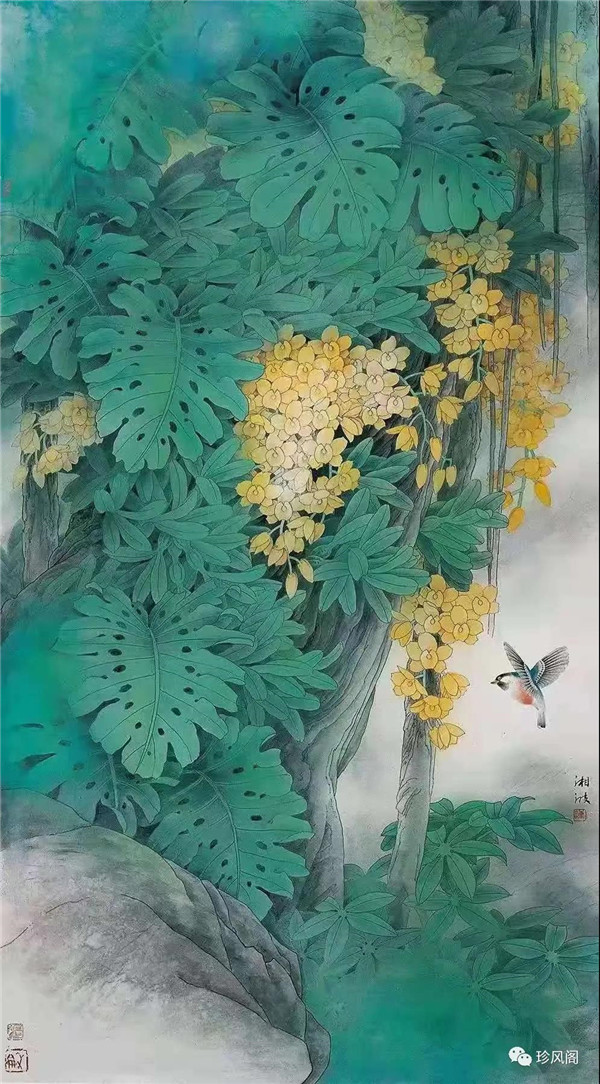 總的來看,陳湘波先生的工筆花鳥畫,繼承了嶺南畫派重生活、重色彩、重創(chuàng)造的優(yōu)秀傳統(tǒng),創(chuàng)作出來的是一系列意境深邃幽遠(yuǎn)的作品。他在繼承傳統(tǒng)的基礎(chǔ)上,借鑒現(xiàn)代設(shè)計、西方繪畫的元素以及其他畫種的繪畫技法,形成了符合現(xiàn)代人審美的具有個人風(fēng)格的當(dāng)代工筆花鳥作品。