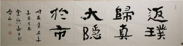 2011年隱居廣東中山,處江湖之遠亦不忘躬耕,以書立德、以筆潤身,專注于佛法經(jīng)文、家學文化和百家家訓(xùn)書法的研究,并創(chuàng)辦五福書院,通過教授古琴、書法、四書誦讀等形式開班授課,以中國傳統(tǒng)文化踐行家學文化。歸隱而不忘憂國,金熙長先生自隱居以來,在珠海、中山、深圳、上海等地舉辦了多次《以書立德、以筆潤身——常福居士百家家訓(xùn)、百種心經(jīng)書法作品全國巡展》;2020年8月,金熙長先生的《方正字跡-金熙長標題體》在方正字庫正式上線。