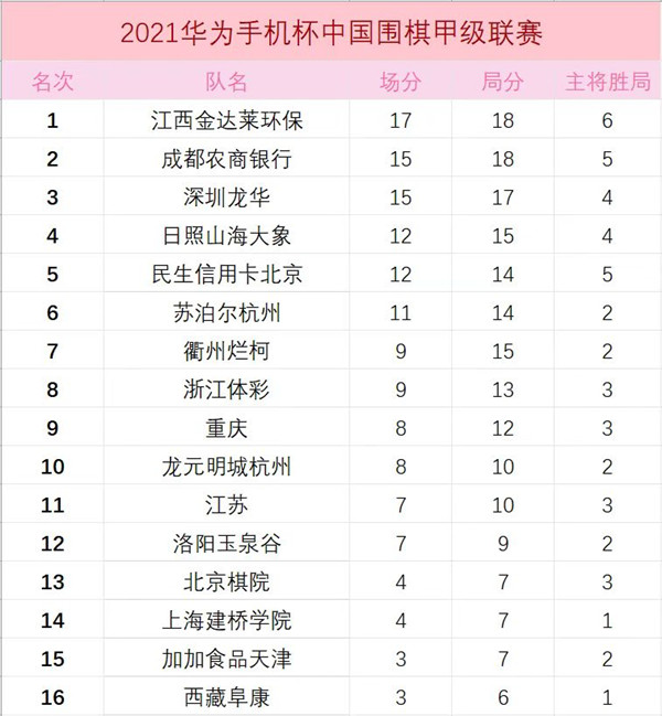 2021華為手機杯中國圍棋甲級聯(lián)賽第六輪深圳龍華隊1:3日照山海大象隊