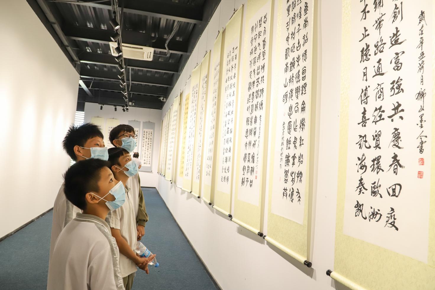 展覽開幕式上,吸引了眾多楹聯(lián)家、楹聯(lián)愛好者以及市民游客前來參觀,更有學(xué)校師生組團(tuán)來參觀。中國(guó)楹聯(lián)學(xué)會(huì)顧委副主任、廣東楹聯(lián)學(xué)會(huì)顧委主任鄒繼海在開幕式上介紹到,百字百聯(lián)百幅書法作品慶建黨百周年,這四個(gè)一百的征聯(lián)活動(dòng)在全國(guó)是最早的,也是唯一的,開創(chuàng)了楹聯(lián)文化界征聯(lián)的先河,值得高興,也值得我們自豪。隨后,鄒繼海宣布此次“觀音山杯”百字百聯(lián)百幅書法作品慶祝中國(guó)共產(chǎn)黨建黨一百周年的聯(lián)墨展觀音山站正式開幕。