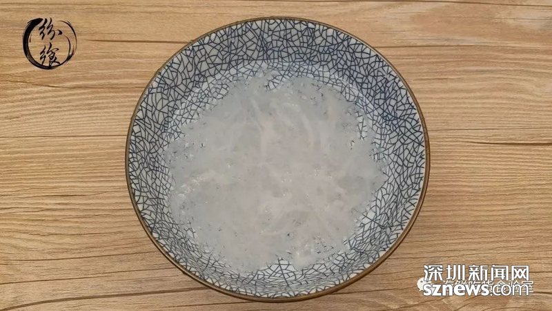 經(jīng)過3~5小時的浸泡后,燕窩已經(jīng)完全泡開。此時用一把小鑷子,將泡發(fā)出的細(xì)碎的燕毛等雜質(zhì)挑出來,清洗干凈泡開的燕窩。