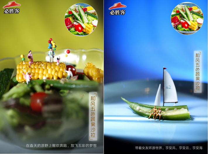 在深圳,必勝客更是腦洞大開,在最新的2018春季菜單,用迷你人偶結合旅游的場景進行創(chuàng)意拍攝。天馬行空的想象,獨特的視角,妙趣橫生,讓人領略美妙“風景”的同時,不禁食指大動。
