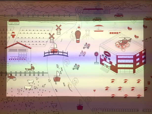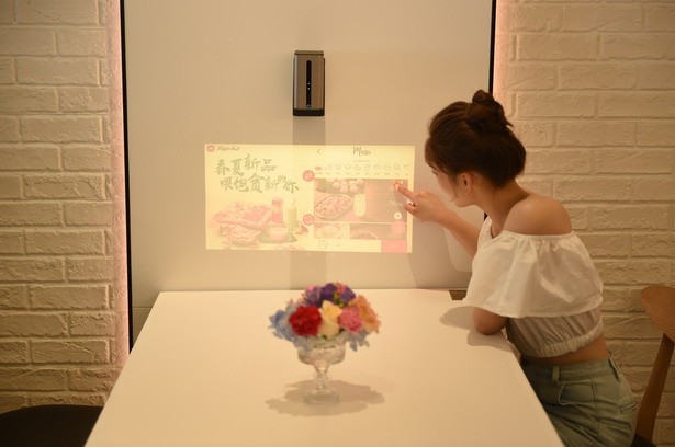 除了“情緒地帶”,智慧餐廳還提供了多元化的互動服務。門店等位區(qū)有一整面具有奇幻動感效果的投影互動墻,通過獨特的觸摸啟動可以探索必勝客的比薩從原料種植、加工、生產,一直到制作成品、奉客、外送等一系列過程,為顧客提供趣味十足的多感官虛擬互動體驗,讓無聊的等位時間也變得興味盎然。