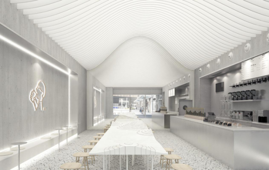 喜茶山外山是“白日夢計劃”第三家門店,與首家“相遇”,第二家“山溪澗”在設(shè)計理念上一脈相承,結(jié)合中國古典山水的詩意和禪意,用現(xiàn)代化的設(shè)計表現(xiàn)形式,探討空間中人與人互動的最佳模式和距離。