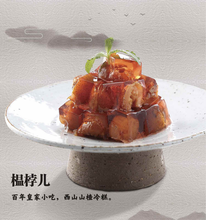 此名相傳為慈禧太后所賜,是她十分喜愛的小零嘴兒。榅桲與山楂外形相似,實(shí)則不同。它是山楂的一種,外體為紅色,更為小巧。梧桐餐廳在制作時(shí)也保證了北京傳統(tǒng)。選好果子后,先要焯水,并將水拋掉,否則有苦澀味,焯完的果實(shí)要扒皮,扒下來的皮和果肉可以一起先炒后煮。煮好的榅桲再經(jīng)發(fā)酵、冷卻,成品榅桲湯晶瑩剔透,果實(shí)軟爛甜糯,吃后不倒牙,且能長期保存,不會腐敗。