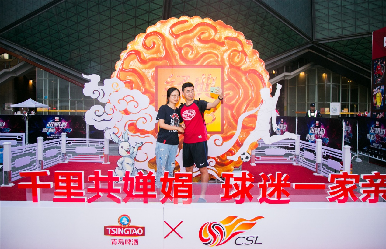 在賽場(chǎng)外,中超贊助商青島啤酒加碼快樂(lè)元素,在當(dāng)中秋之夜攜手一同為球迷呈獻(xiàn)豐盛的歡聚盛宴,巨型月餅裝置、cosplay嫦娥玉兔、定制啤酒月餅、球迷霸王餐等互動(dòng)體驗(yàn),為中超比賽注入無(wú)限激情與活力。