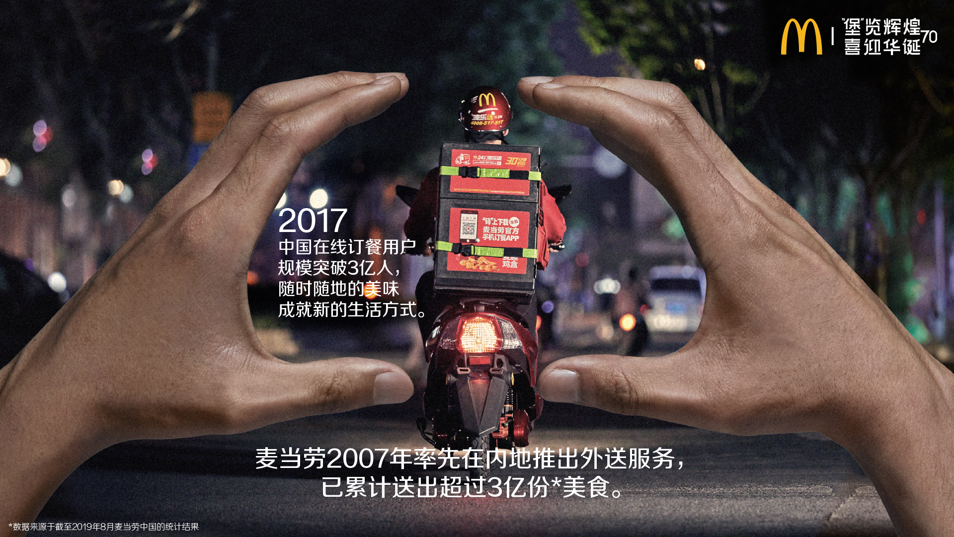 外送生活,方便美味:2017年,中國在線訂餐用戶突破3億人,外賣已成為一種生活方式。麥當(dāng)勞中國于2007年率先推出外送服務(wù)。截至2019年8月,麥當(dāng)勞累計送出超過三億份餐點(diǎn),讓消費(fèi)者在不同場景下享受高品質(zhì)的食品。(常軍平)