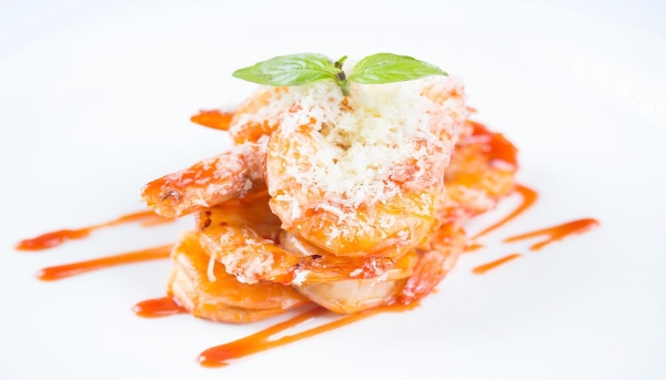 做法:將大蝦去除紗線并清潔干凈,放入冰水中靜置10分鐘;將蝦取出后擦干水分,放入熱鍋中炸至背脊翻開;放入蔥姜段翻炒,放茄汁和糖調(diào)味;出鍋時快速放入芝士翻炒,出鍋裝飾即可。