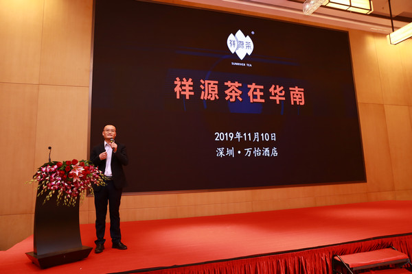祥源茶業(yè)營銷中心助理總經(jīng)理華南、河南大區(qū)市場總監(jiān)趙東方先生介紹祥源茶未來在粵港澳大灣區(qū)及華南、西南市場面對(duì)的機(jī)遇和未來營銷布局