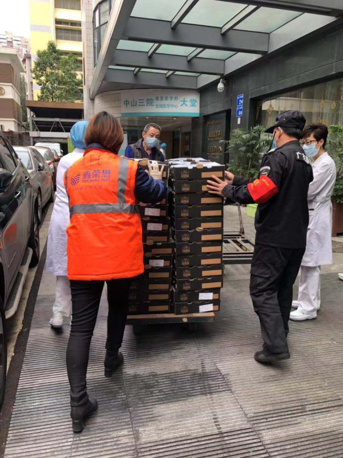 鑫榮懋集團為中山大學附屬第三醫(yī)院送去270箱新鮮水果。
