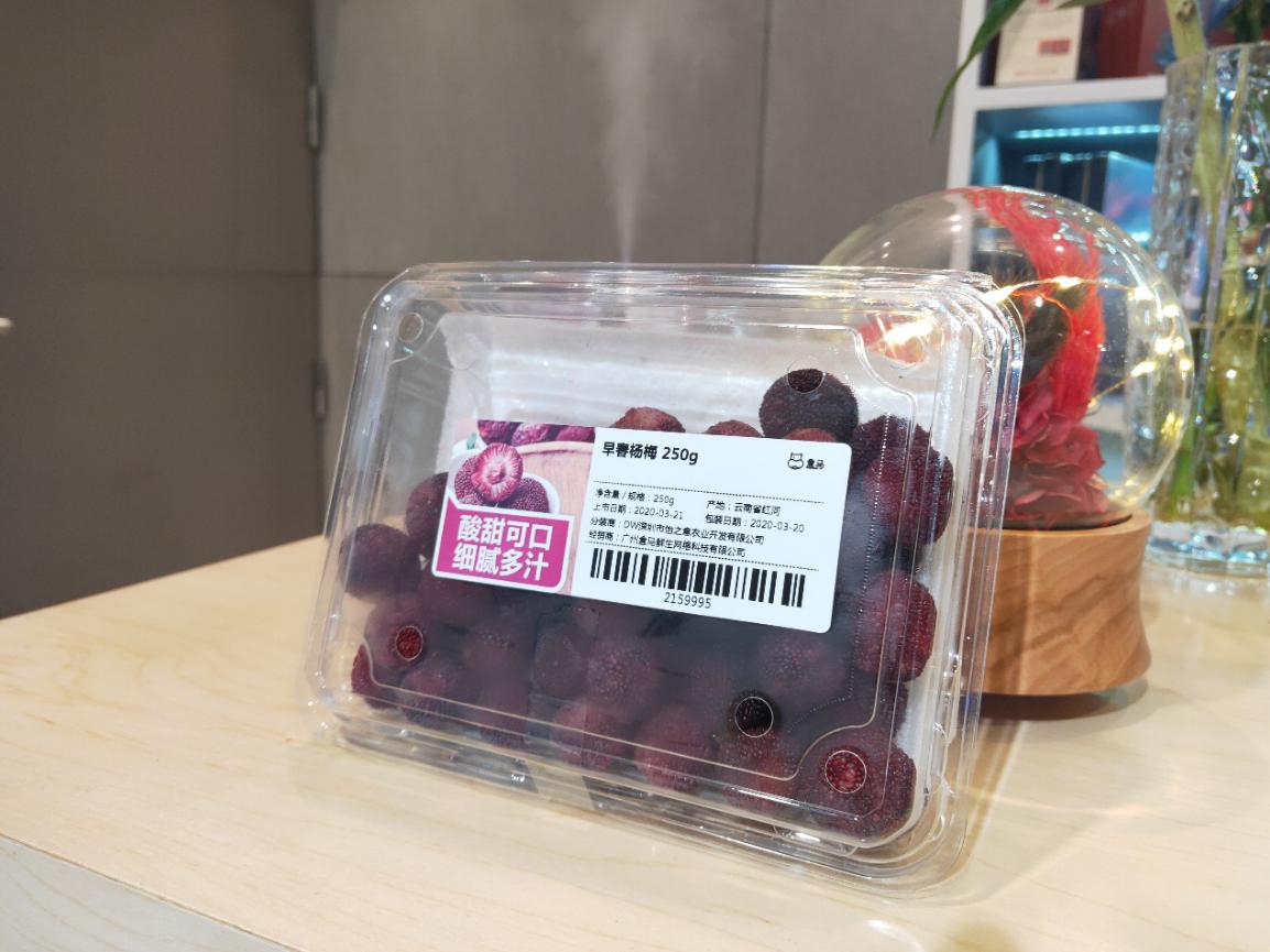但是,由于地方偏僻、交通不便,加上楊梅本身不耐久貯久壓、難長途運(yùn)輸,石屏楊梅長期以來也是“養(yǎng)在深閨人未識(shí)”。為此,盒馬采購李純海早在年前就與云南的早春楊梅種植基地建立聯(lián)系并實(shí)地考察,掌握其生長的第一手信息,一旦成熟即進(jìn)場(chǎng)采摘?!叭ツ晡覀?cè)趶V東進(jìn)行了試點(diǎn),今年我們提前準(zhǔn)備了耗材輸送到云南產(chǎn)地,基地工人將楊梅采摘預(yù)冷后,直接按照零售終端銷售要求打包?!崩罴兒Uf,每天下午,打包好的早春楊梅被送到昆明長水機(jī)場(chǎng),當(dāng)晚運(yùn)廣州、深圳、成都,次日就可放上盒馬貨架。不但減少加工環(huán)節(jié),也降低了商品損耗。