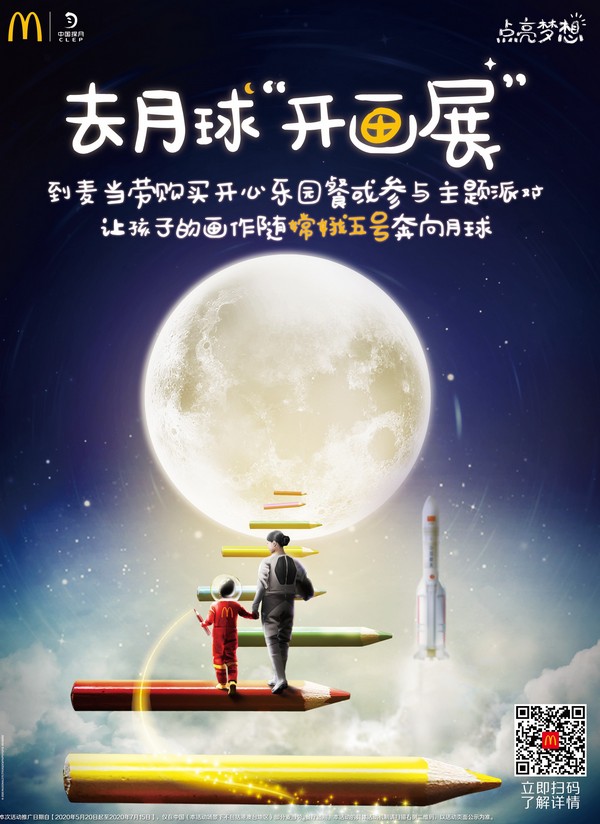 麥當(dāng)勞中國與“中國探月”合作,讓兒童夢(mèng)想畫作隨“嫦娥五號(hào)”奔向月球。