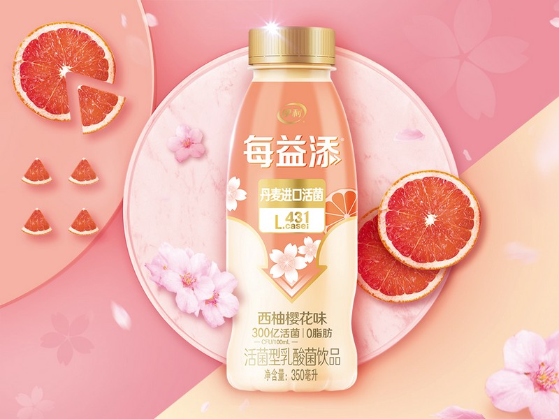 “西柚和櫻花的結(jié)合,花果搭配清新豐富。包裝上,在整體保持每益添品類視覺基調(diào)的一致性的基礎(chǔ)上,添加了花果設(shè)計元素。視覺顏色上傳達了櫻花和西柚的混合特征,櫻花的粉和西柚的橙結(jié)合,元素搭配上采用‘小即是多’的原則,幾朵櫻花一片西柚表現(xiàn)了每益添‘快樂簡單無負擔’的愿景。”由18位產(chǎn)品研發(fā)和市場調(diào)研方面的專家組成的評委團,圍繞感官體驗、理念創(chuàng)新、消費者溝通與整體感受等維度,對每益添西柚櫻花創(chuàng)新口味飲品進行了評鑒,并給出這樣的評審語。作為伊利旗下唯一專注低溫活性乳酸菌飲品的品牌,每益添始終堅持助消化的功能打造,其每100毫升富含300億的丹麥進口專屬活菌,從2018年首創(chuàng)百香果創(chuàng)新口味至今,屢創(chuàng)低溫活乳新佳績,引領(lǐng)低溫活乳發(fā)展新潮流。