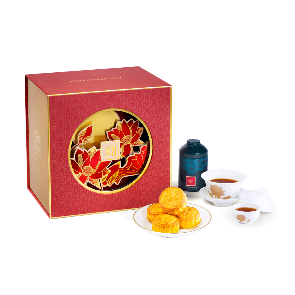 除各式經(jīng)典禮盒外,今年特別推出四個(gè)迷你奶黃月餅輕巧裝,而由米其林星級(jí)名廚、半島酒店中式餐飲顧問(wèn)鄧志強(qiáng)師傅監(jiān)制構(gòu)思的桂圓及核桃兩款奶黃月餅將載譽(yù)歸來(lái)。其中,兩款迷你奶黃月餅設(shè)有獨(dú)立盒裝及星廚賞月禮盒,禮盒裝潢精美,紅色禮盒盛載以上兩款特色口味月餅各四個(gè)、一罐半島中式名茶、一套限量版陶瓷蓋碗及一對(duì)茶杯,與親友用以沏茶賞月,別有一番雅興。