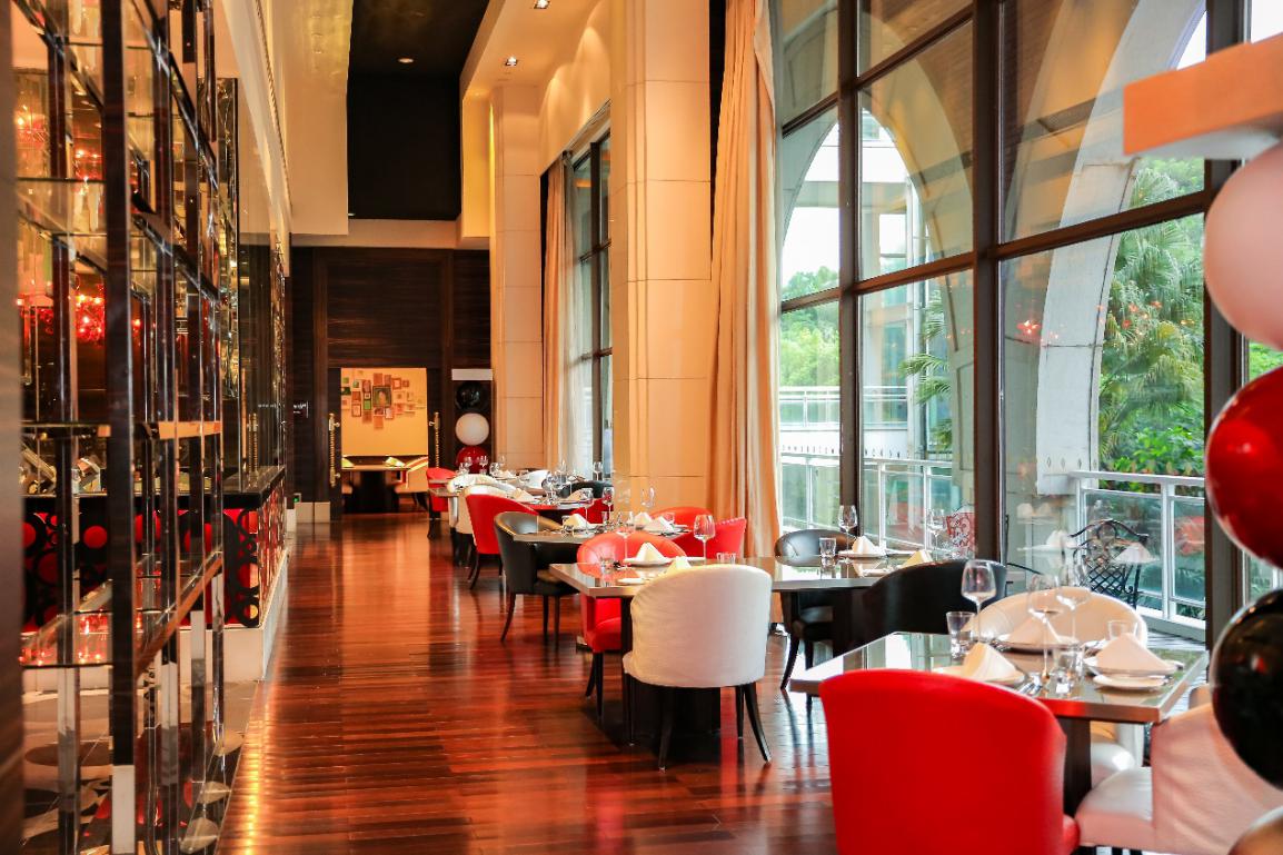 Pipette Bistro法國餐廳極具藝術(shù)氣息的前沿設(shè)計(jì)與美食佳釀相映成趣,挑高的就餐空間,搭配開放式廚房,讓就餐體驗(yàn)更為靈動(dòng)。隨處可見的環(huán)形裝飾設(shè)計(jì)理念來源于法國香檳中肆意跳動(dòng)的氣泡,Pipette Bistro對精致的追求從廚房里那套紅色的“法拉利”廚具可見一斑,純手工鍛造的歐洲廚房頂級品牌Molteni烹飪爐具,來自法國普羅旺斯,特殊的材質(zhì)可以把熱度傳到臺(tái)面每個(gè)角落。除了開放用餐區(qū),五間主題貴賓包房在黑白兩色的基礎(chǔ)上,裝飾風(fēng)格添加暖色基調(diào),圖書館、香檳房、拿破侖、紅酒房和拉圖房將私密用餐提升到新高度,拉圖房由聞名世界的Chateau Latour酒莊和華僑城洲際大酒店聯(lián)手打造,房間里珍藏了Latour地圖、量酒器、書籍以及由Latour總裁給酒店的一封祝賀信。