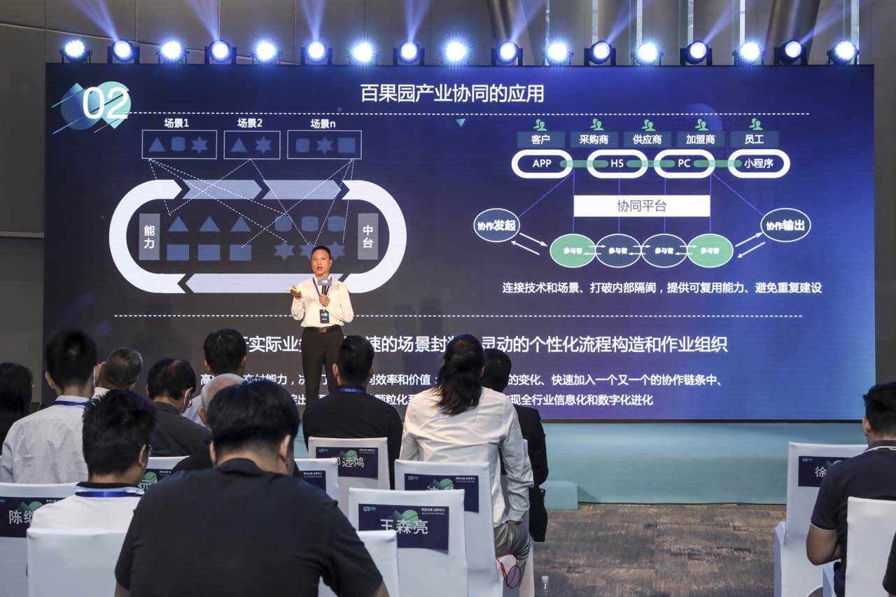 “雁陣”協(xié)同平臺通過SaaS、APaaS組建和iPaaS,將場景應(yīng)用和任務(wù)驅(qū)動完美地連接在了一起。百果園集團(tuán)副總裁徐永劍表示,“連接型”才是以前傳統(tǒng)OP軟件時代的弱項,是新SaaS產(chǎn)品的甜區(qū)。作為“雁陣”協(xié)同平臺上的業(yè)務(wù)生態(tài)之一“百果園”,便是將其在生鮮領(lǐng)域多年來的IT生態(tài)能力進(jìn)行開放和共享。