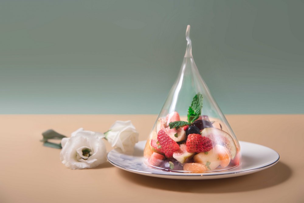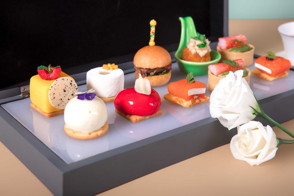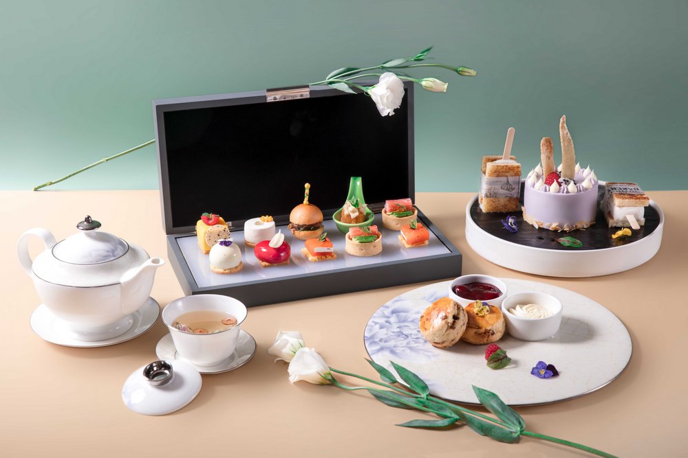 酒店餅房廚師長趙偉融匯創(chuàng)新,選用當(dāng)季新鮮花材與鮮爽水果,打造了數(shù)款意趣多彩的甜品佳作:茉莉百香果椰子蛋糕,茉莉花的清新邂逅酸甜的百香果與香濃的椰子,細品層疊交融的奇妙滋味;洛神花玫瑰蛋糕,玫瑰的馥郁悠長糅合洛神花的明快艷麗,一口便是春天;青檸春茶蛋糕,別具創(chuàng)意地將青檸和碧螺春茶融合,酸爽口感里裹挾著若隱若無的茶香;桂花米酒蛋糕,當(dāng)桂花飄進米酒,花香伴著微醺,細膩綿柔,在唇齒間琢磨品味;水果“炸彈”,輕輕一敲,冰爽可口的水果傾瀉而出,果香四溢,是視覺和味覺的盛宴。咸點也是不可錯過的味蕾禮賞:肉質(zhì)鮮嫩的蟹肉和清新爽口的牛油果巧妙融合,呈現(xiàn)海陸鮮甜交匯的美妙體驗;細膩鮮美的三文魚,配上絲滑濃郁的奶油芝士和誘人的魚子醬,是一場舌尖的奢享。隨下午茶搭配的新鮮烘焙司康餅,花香果香四溢的花茶,更增添午后的曼妙意趣。