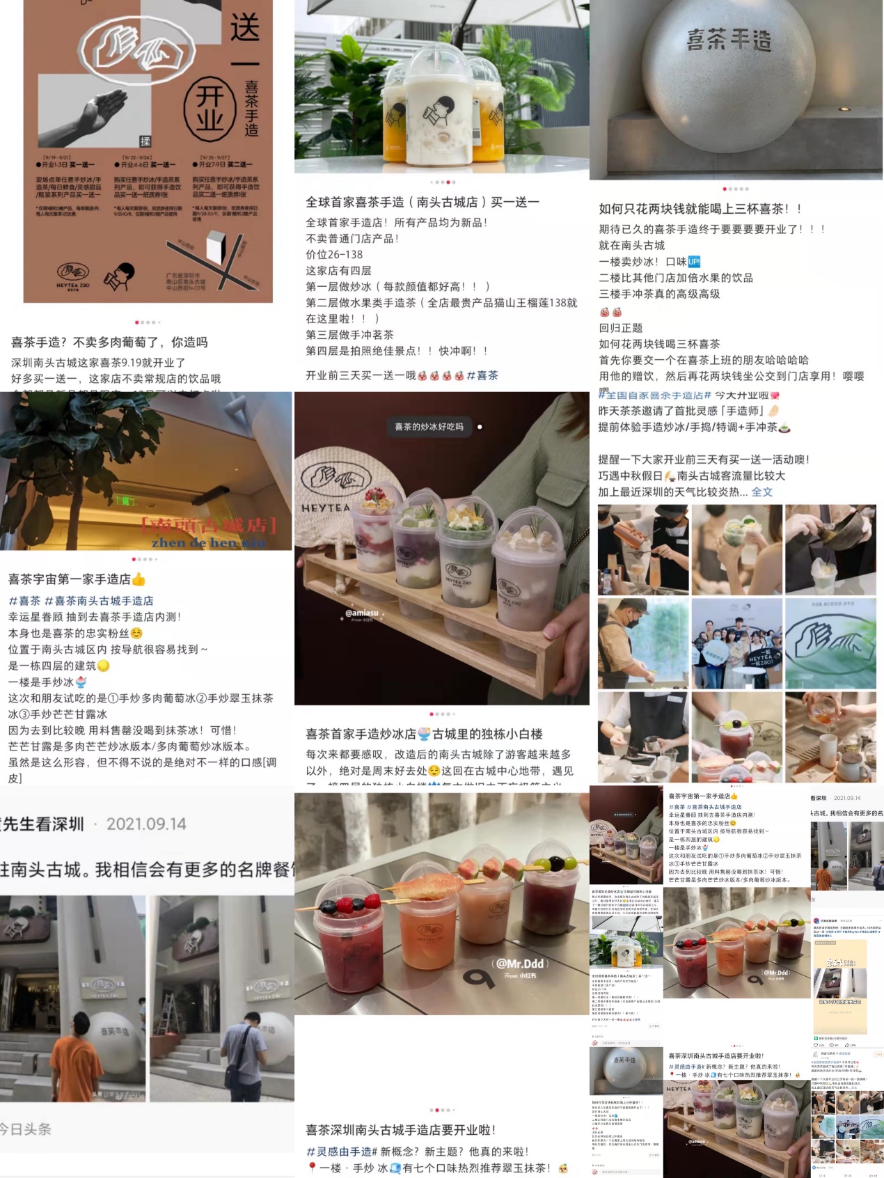 雖然才是正式營業(yè)的第一天,但喜茶南頭古城店憑借多款手造新品,以及傳統(tǒng)與現(xiàn)代結合的靈感空間設計,迅速聚攏了超強人氣。在社交媒體平臺上,“打卡喜茶手造店”“喜茶手造店初體驗”“喜茶手造飲品測評”的話題也頻頻出現(xiàn)。