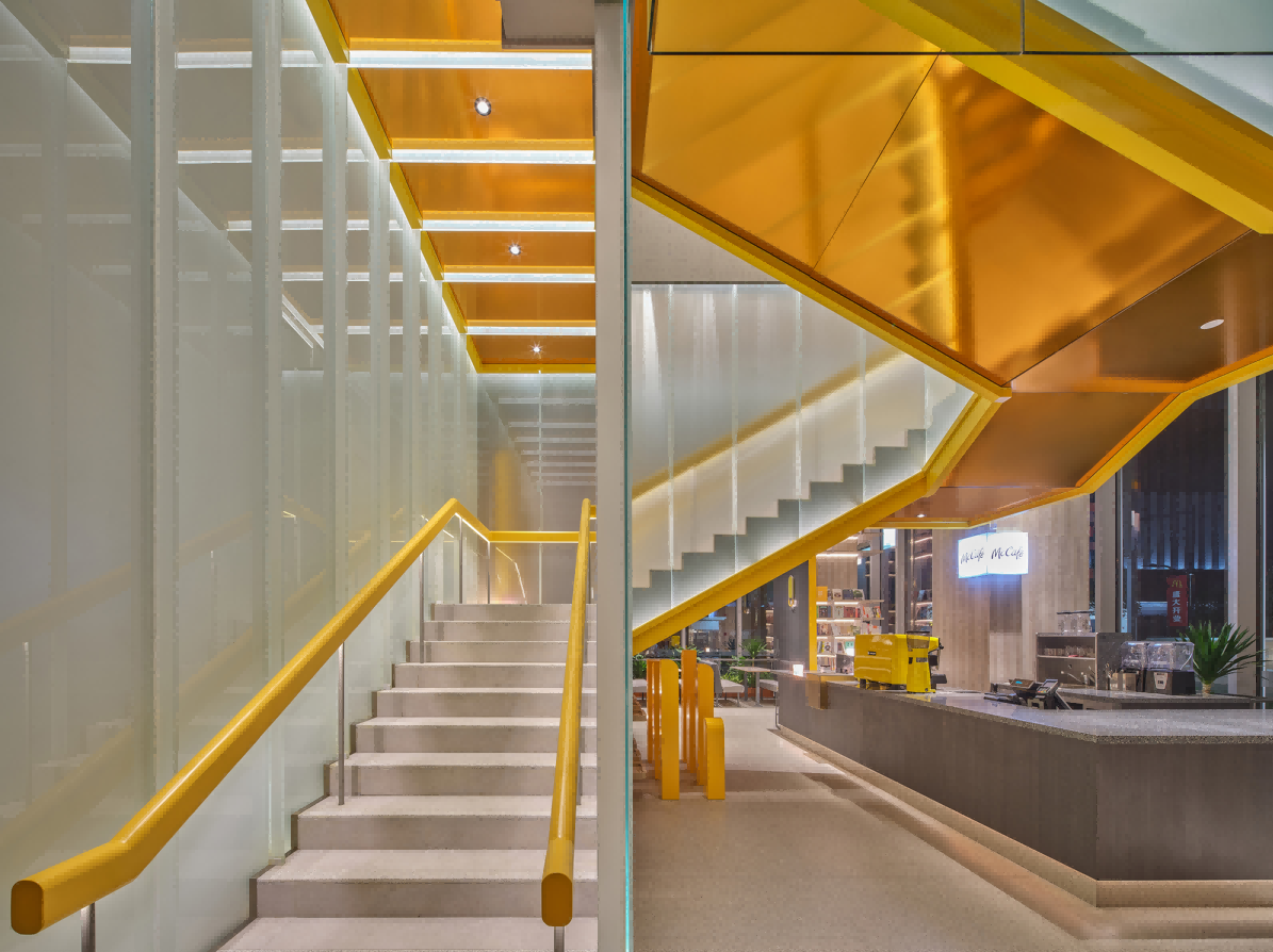 麥當(dāng)勞中國新總部大樓為獨(dú)棟建筑,共有八層,與麥當(dāng)勞經(jīng)典產(chǎn)品“巨無霸”層數(shù)一致,錯(cuò)落的樓體外觀酷似魔方。“巨無霸魔方MCHQ”展現(xiàn)了麥當(dāng)勞全球餐飲行業(yè)“巨無霸”的領(lǐng)先地位,“魔方”般的大樓外觀設(shè)計(jì)也彰顯了麥當(dāng)勞年輕潮流、活力創(chuàng)新的形象。室內(nèi)細(xì)節(jié)也亮點(diǎn)滿滿,四至八層使用了專屬的主題配色,標(biāo)志性的 M形樓梯連通核心辦公區(qū)域,創(chuàng)造了更多開放協(xié)作的空間感。