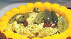順德聯(lián)塑萬(wàn)怡酒店的主廚馮耀滿(mǎn)推出一款非常健康的創(chuàng)新菜——南瓜五谷雜糧扒蘋(píng)果。
