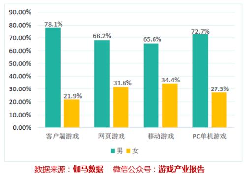 中國(guó)音數(shù)協(xié)游戲工委、伽馬數(shù)據(jù)的《2016中國(guó)游戲產(chǎn)業(yè)報(bào)告》曾經(jīng)指出:在國(guó)內(nèi)的大部分游戲平臺(tái)上,女性玩家和男性玩家整體都呈現(xiàn)出近似于三七開的比例。